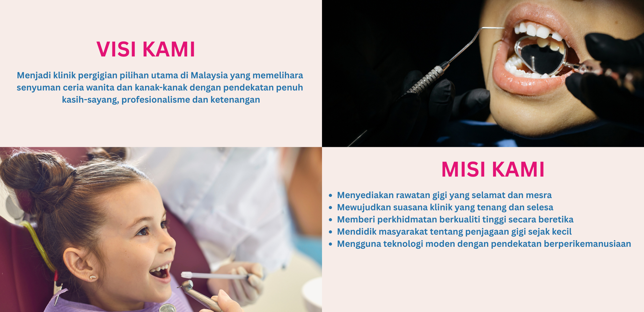 Kami di Klinik Pergigian Aksara komited memberikan pengalaman rawatan pergigian yang lembut, selesa dan menyenangkan — khas untuk wanita dan kanak-kanak. Dengan doktor wanita yang berpengalaman, suasana klinik yang minimalis dan mesra keluarga, kami sentiasa mendahulukan keselesaan dan ketenangan anda.